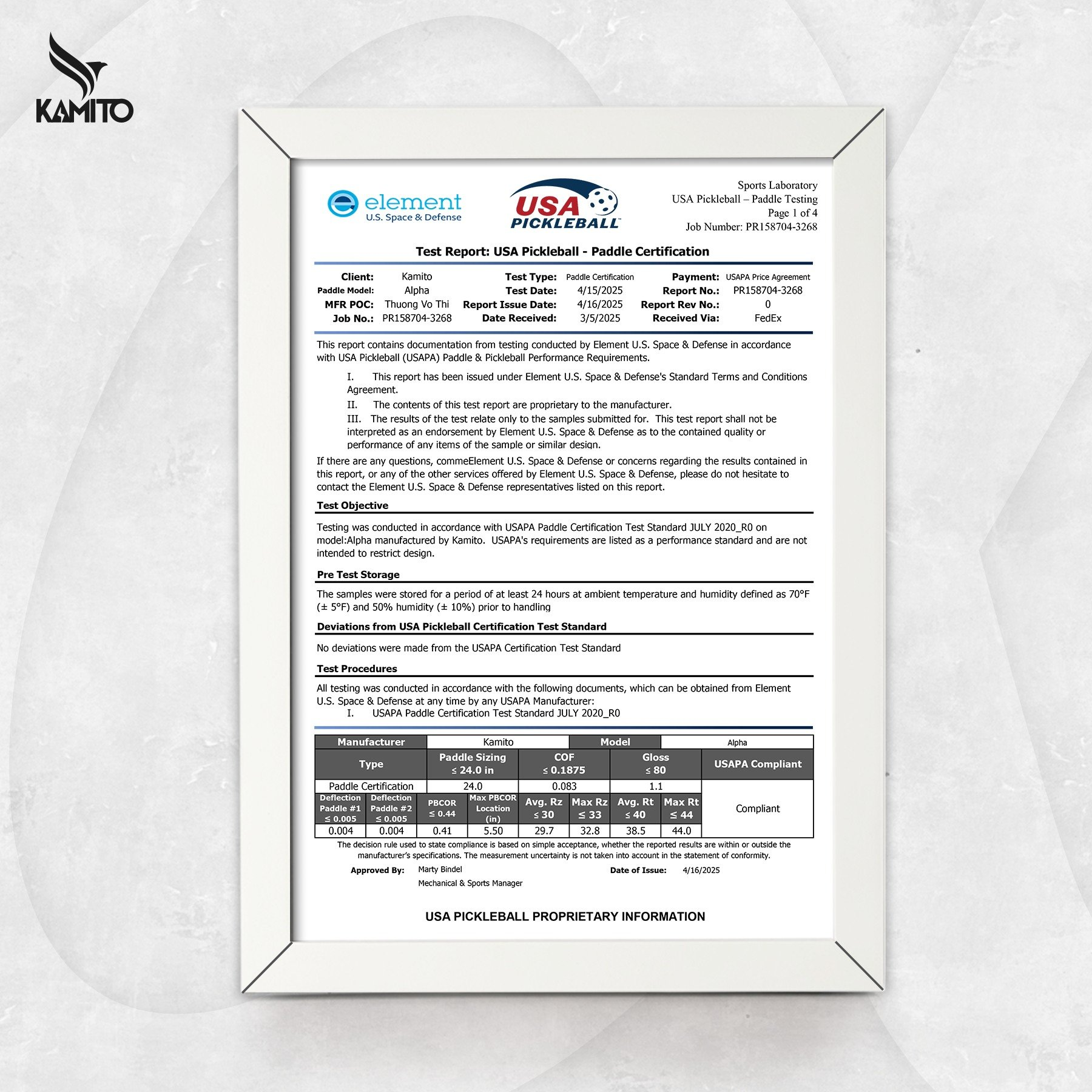 4. KAMITO ALPHA PICKLEBALL RACKET IS USAPA CERTIFIED