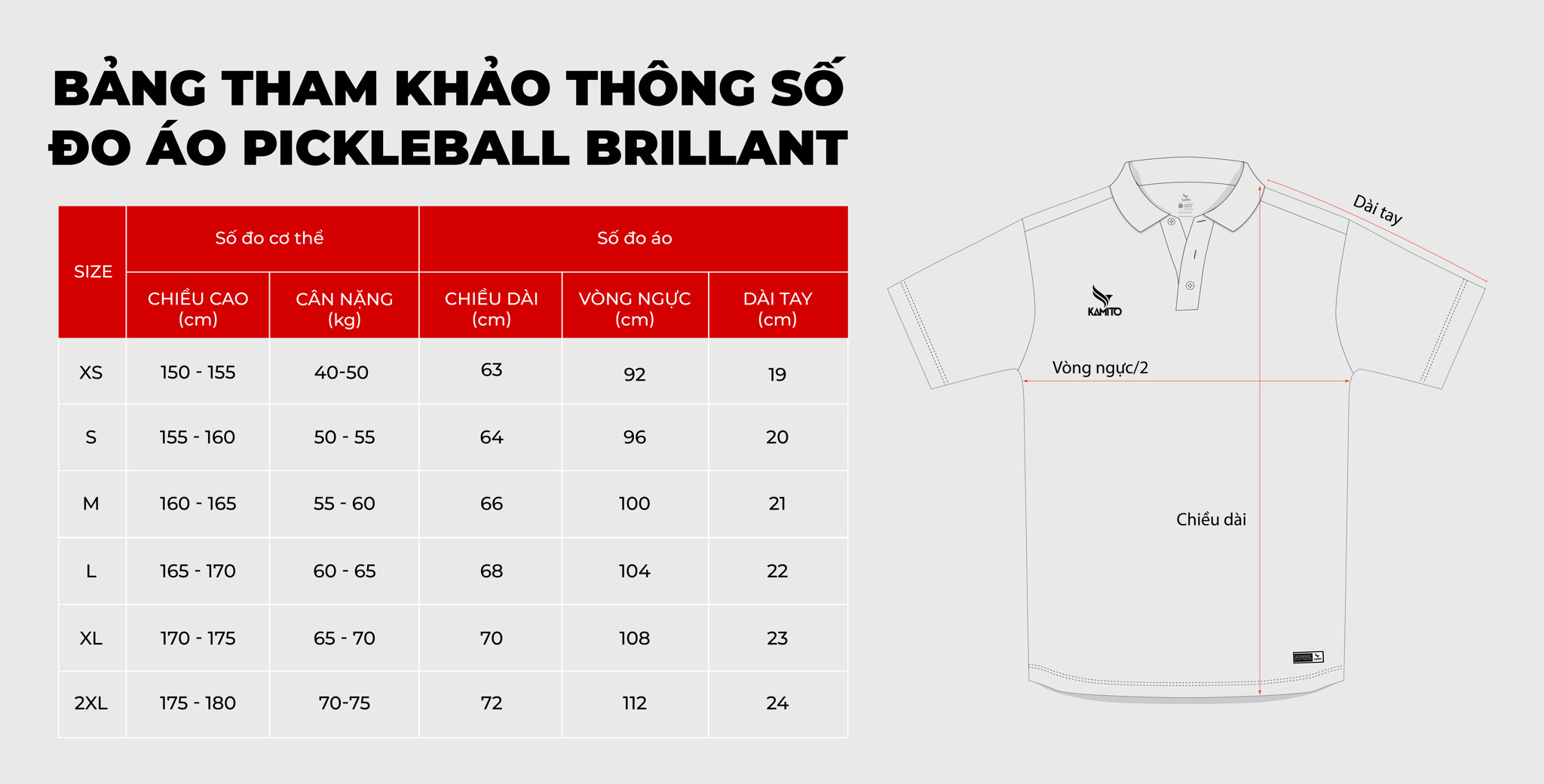 2. KAMITO BRILLIANT V1 PICKLEBALL POLO SHIRT SIZE CHART: