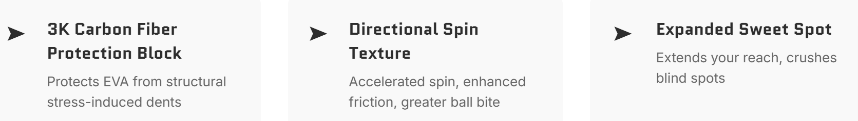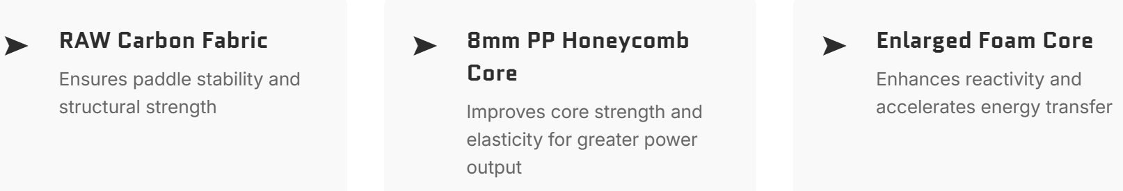 Fueled by groundbreaking inner core technology featuring an innovative U-shaped carbon fiber matrix structure that progressively layers kinetic energy, the Cannon delivers unmatched explosive force and lossless energy conduction. Your smashes explode like cannonballs, decisively overwhelming your opponents.