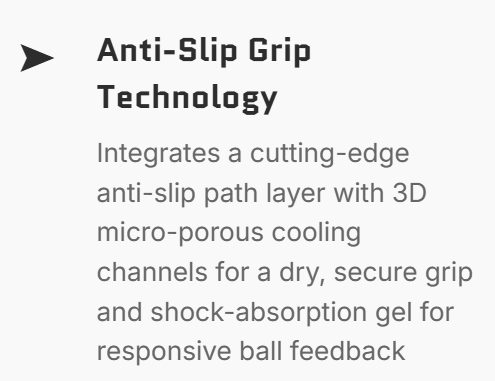 • Anti-Slip Grip with 3D micro-porous cooling channels, shock-absorption gel layer