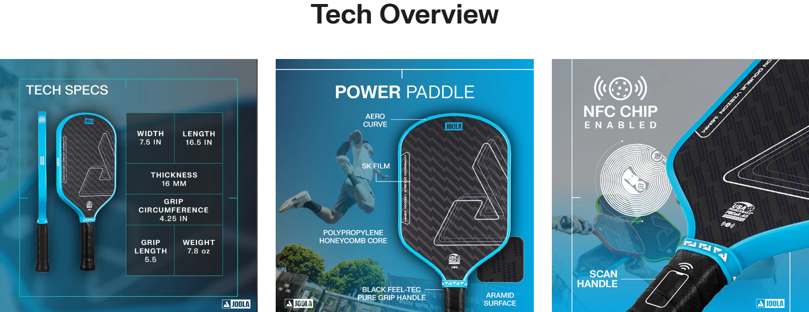 Inside, JOOLA’s SK Film works with the thermoforming process to minimize vibration and elevate control, while adding long-lasting flexibility and stability. Available with a red, blue, or yellow edge guard, the Hyperion Double Vision is USAP PBCoR.43 Certified.