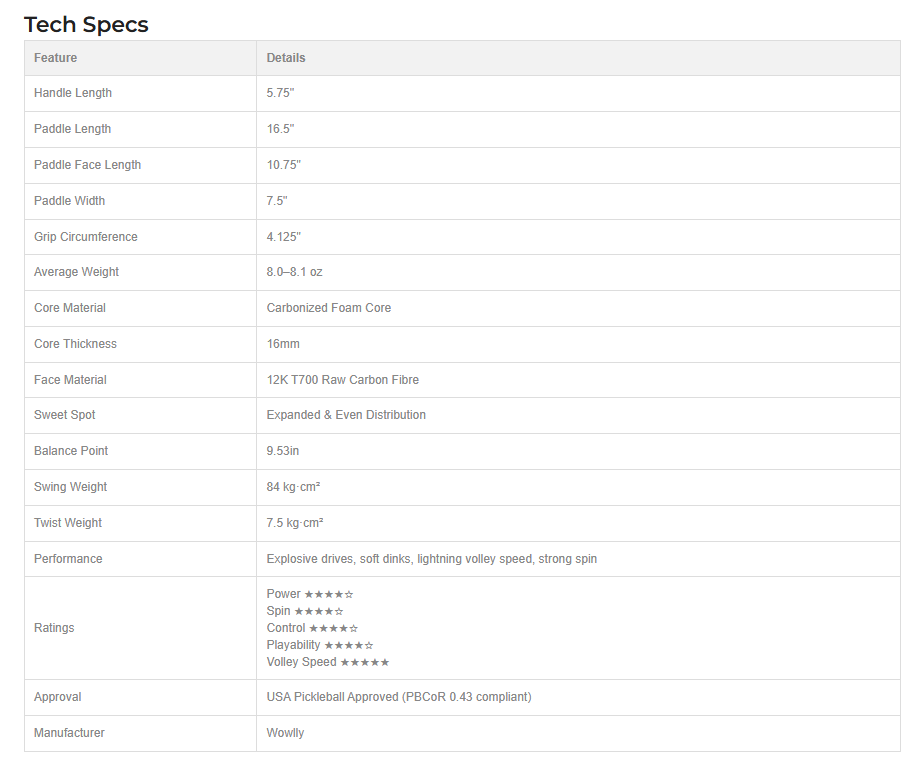 Wowlly SST Carbonized Foam Core Pickleball Paddle